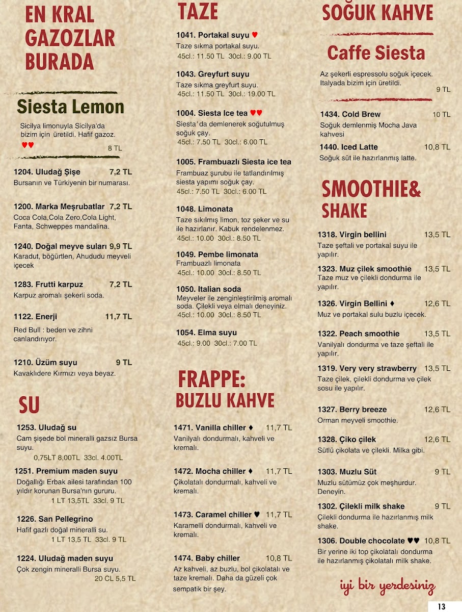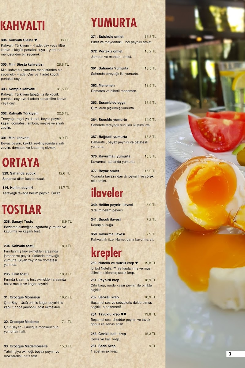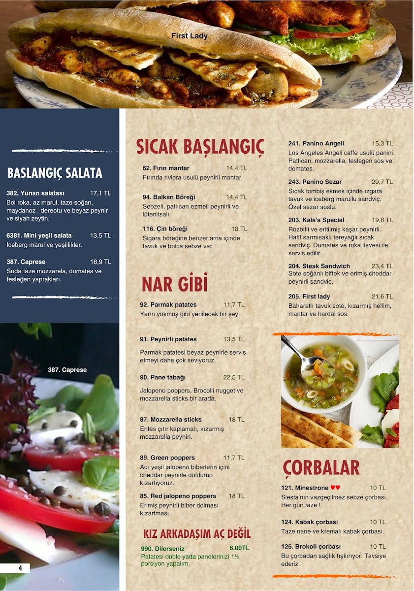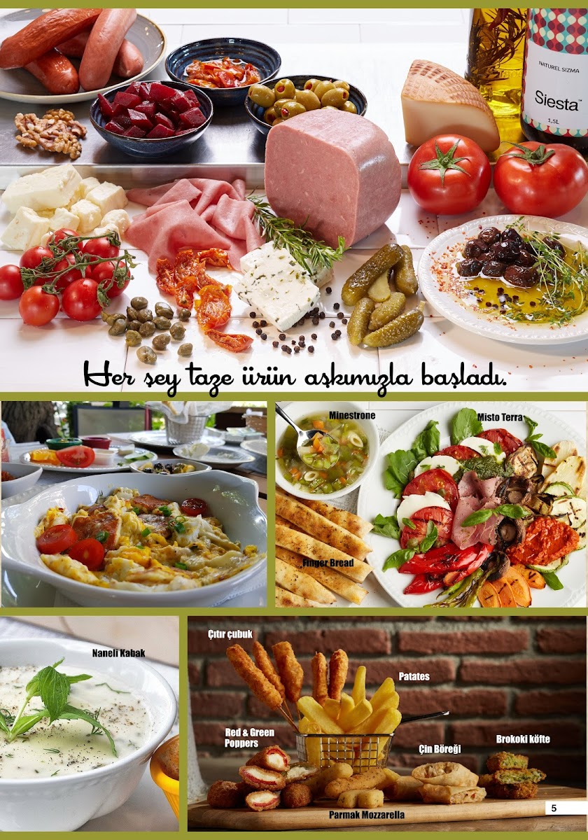 For a unique Turkish touch, don't miss the traditional Türk Kahvesi. This iconic drink brings a rich, deep flavor that is quintessential to Turkish coffee culture. If you're looking for a hearty start to your meal, the Menemen Şahane is a must-try. This Turkish-style scrambled eggs dish with vegetables and spices is perfectly savory and comforting. Similarly, the Minestrone soup offers a robust and healthy option, loaded with vegetables, making it a great pick for those seeking a light yet satisfying meal.