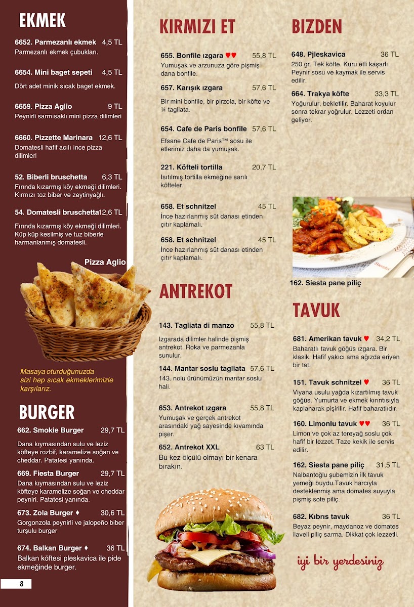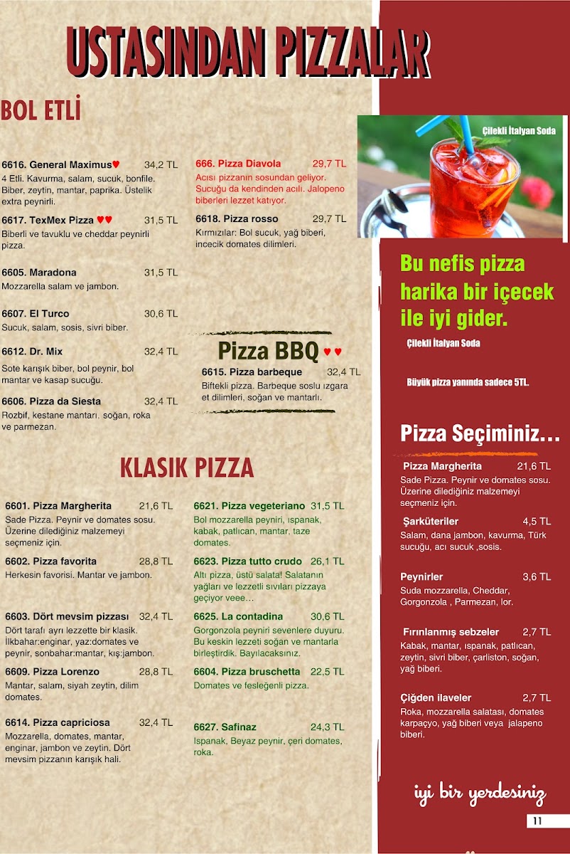 For a more filling option, the Vegetarian Pizza is an excellent choice, bursting with fresh vegetables and a savory base. Another pizza on the menu, the Kurutulmuş Domatesli Sonbahar Pizzası, combines the rich flavors of sun-dried tomatoes, creating a unique seasonal dish that reflects the changing tastes of autumn.